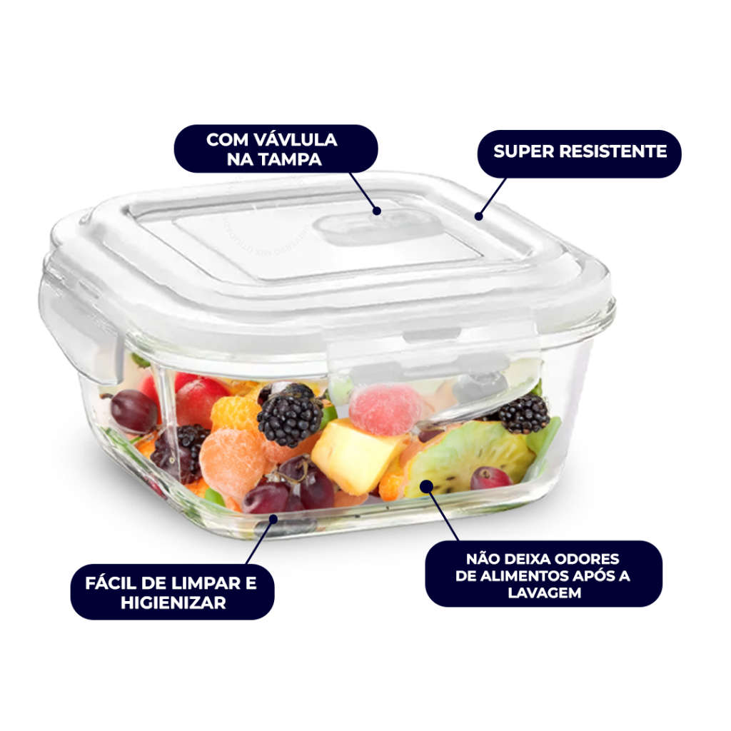 | Kit 10 OU 5 Pote de Vidro Hermético Retangular 4 Travas Marmita Fit... | R$ 45,90 | 43% | 4.8/5 | 5.5 mil |