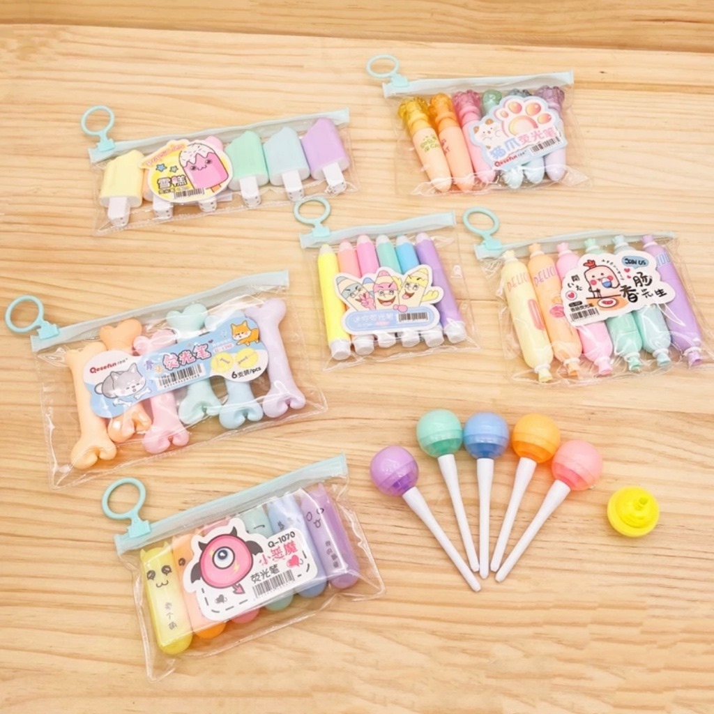 Kit 10 Pacotes/Com 6/5/4 Peças Mini Marcador De Texto / Kawaii Desenho Fofo Marca Texto