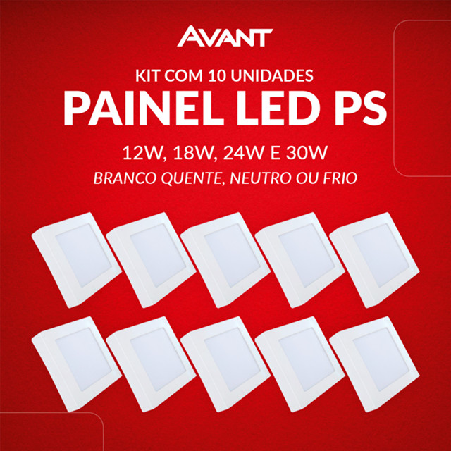 Kit 10 Painel led Plafon Pop Sobrepor 12w, 18w, 24w ou 30w 3000k, 4000k ou 6500k 110v/220v Bivolt Branco Avant