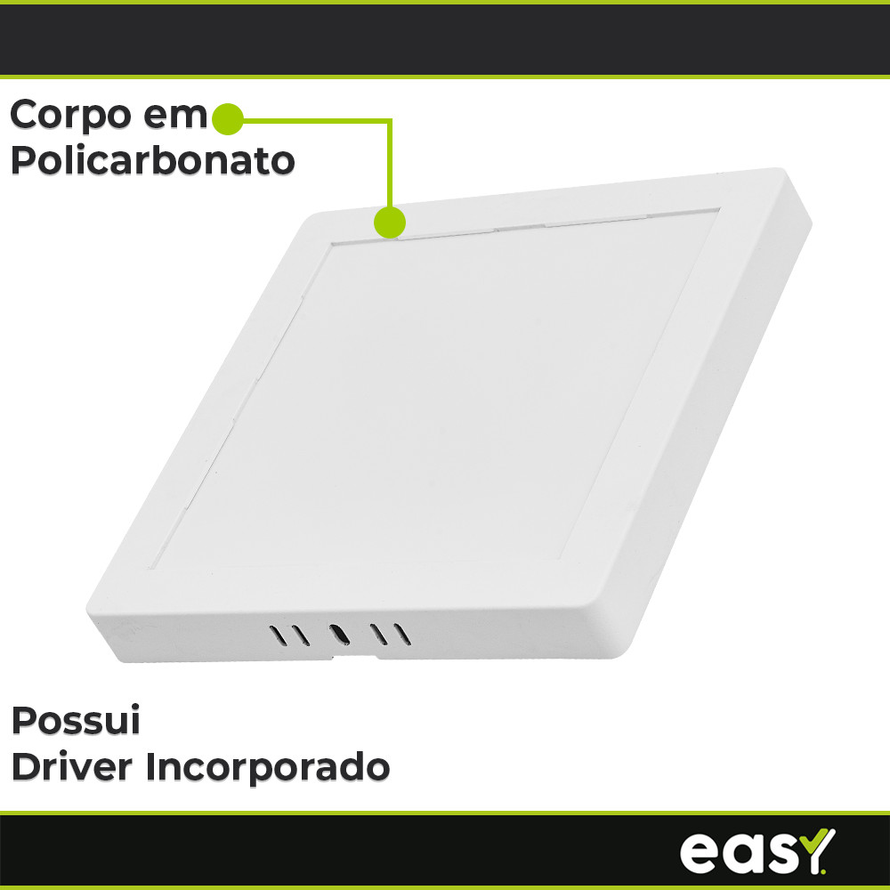 Kit 10 Painel Led Sobrepor 25w 6500k Quadrado Bivolt - Easy