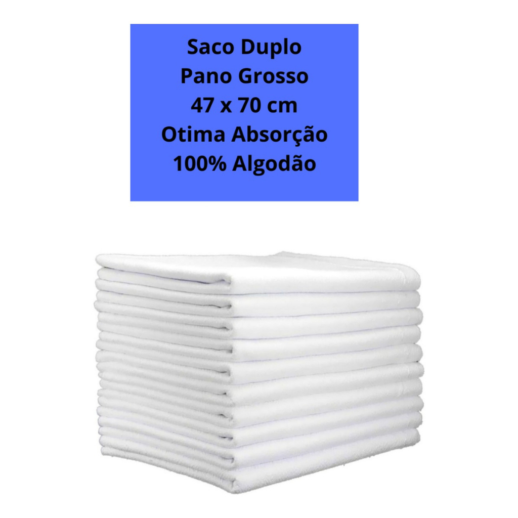 Kit 10 Pano De Chão Branco Grande Grosso Atacado Saco Duplo 47 cm x 70 cm Alta Qualidade Oferta