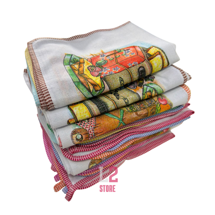 Kit 10 Pano De Prato Estampado Com Viés