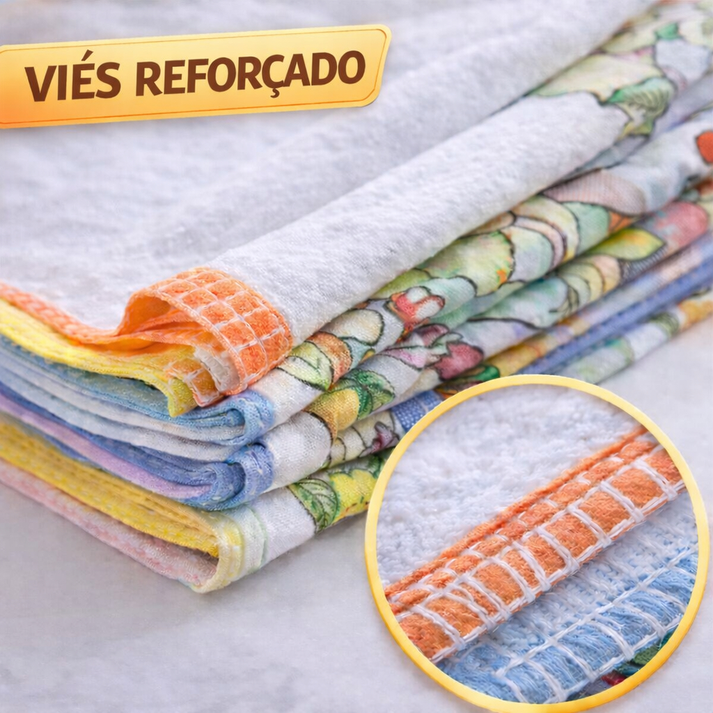 🧺 KIT 10 PANOS DE PRATO 100% ALGODÃO 40x60cm COM VIÉS Deixe sua cozinha mais bonita, organizada e prática com nosso kit de panos de prato 100% algodão, ideal para uso diário, decoração e também para artesanato. Produzidos em algodão de qualidade, com acabamento em viés reforçado, oferecem ótima absorção e durabilidade. 📌 CARACTERÍSTICAS ✔ Kit com 10 unidades ✔ Tamanho ideal: 40x60 cm ✔ Material: 100% algodão ✔ Acabamento com viés reforçado ✔ Estampas sortidas (envio conforme disponibilidade) 💧 BENEFÍCIOS NO DIA A DIA ✔ Excelente absorção para enxugar louças e utensílios ✔ Tecido resistente e durável ✔ Ideal para uso doméstico ou revenda ✔ Também indicado para artesanato e decoração 📦 O QUE VOCÊ RECEBE Você receberá 10 panos de prato estampados com viés, em cores e estampas variadas. ⚠️ IMPORTANTE • As estampas são enviadas de forma sortida conforme estoque disponível. • As imagens são ilustrativas.