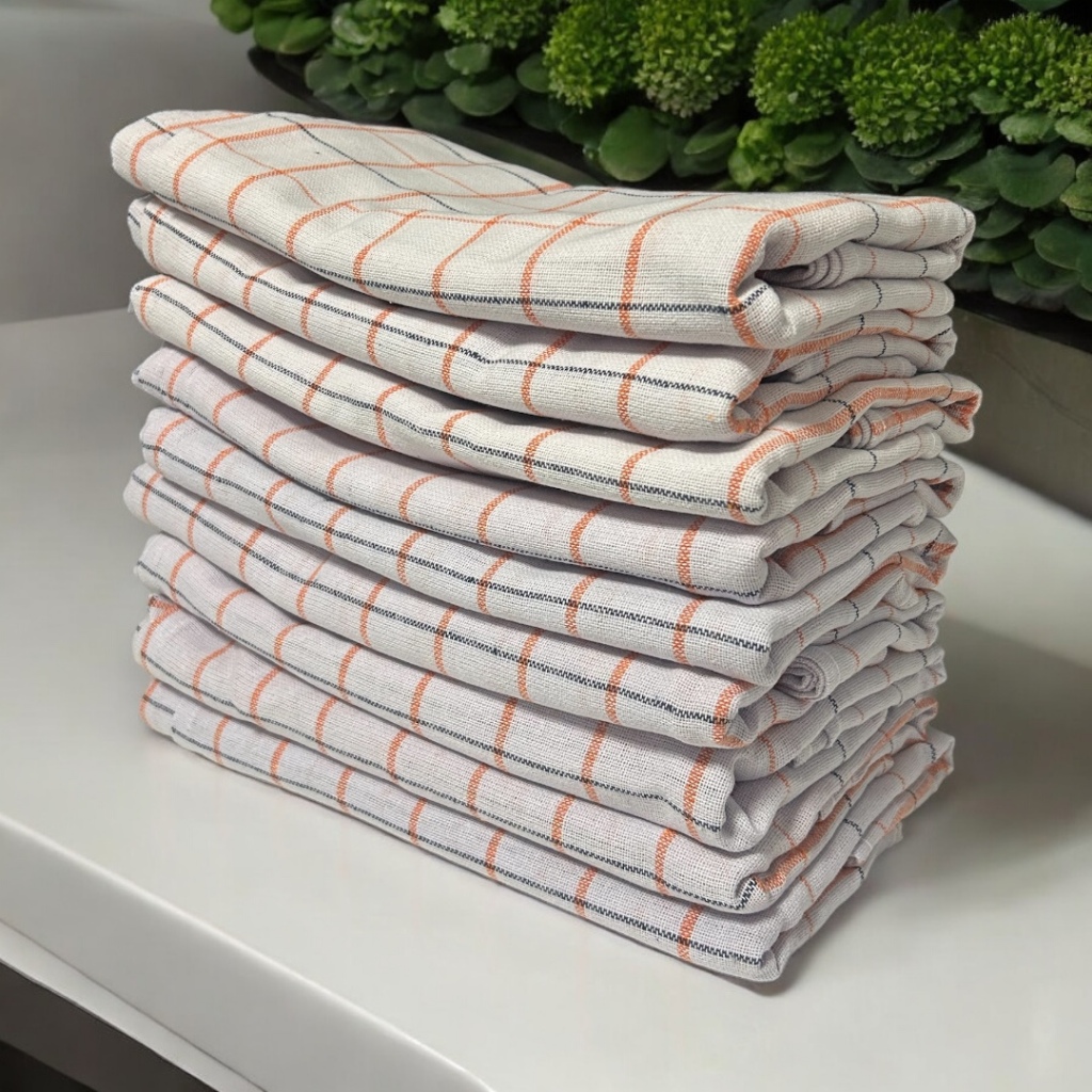 Kit 10 Panos de Prato Copa sem Estampa Branco e Xadrez 41x65 cm Guardanapo Bainha 100% Algodão