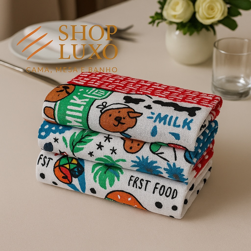 Kit 10 Panos de Prato de Copa Estampadas Felpudas 100% Algodão 40x60cm Alta Absorção