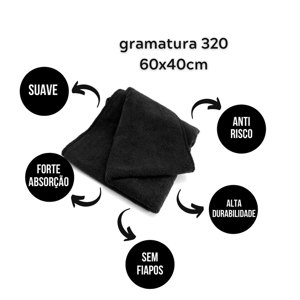 Kit 10 Panos Mágico de Microfibra Automotivo Grande Preto 60x40cm Anti Risco Não Solta Fiapos