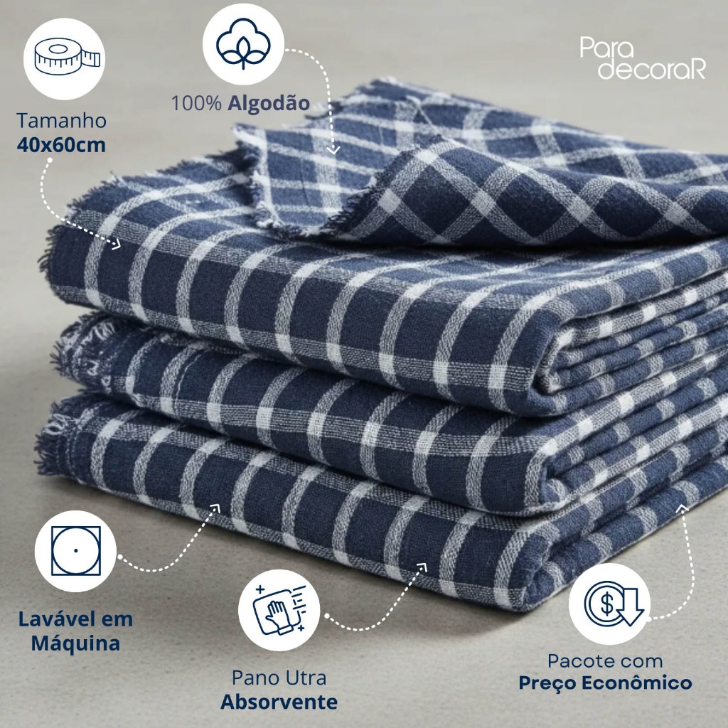 | Kit 10 Panos Xadrez Limpeza Chão Azul 40x60cm Sacaria Dupla 100% Al... este produto | R$ 36,90 | — | 5.0/5 | 4 |
