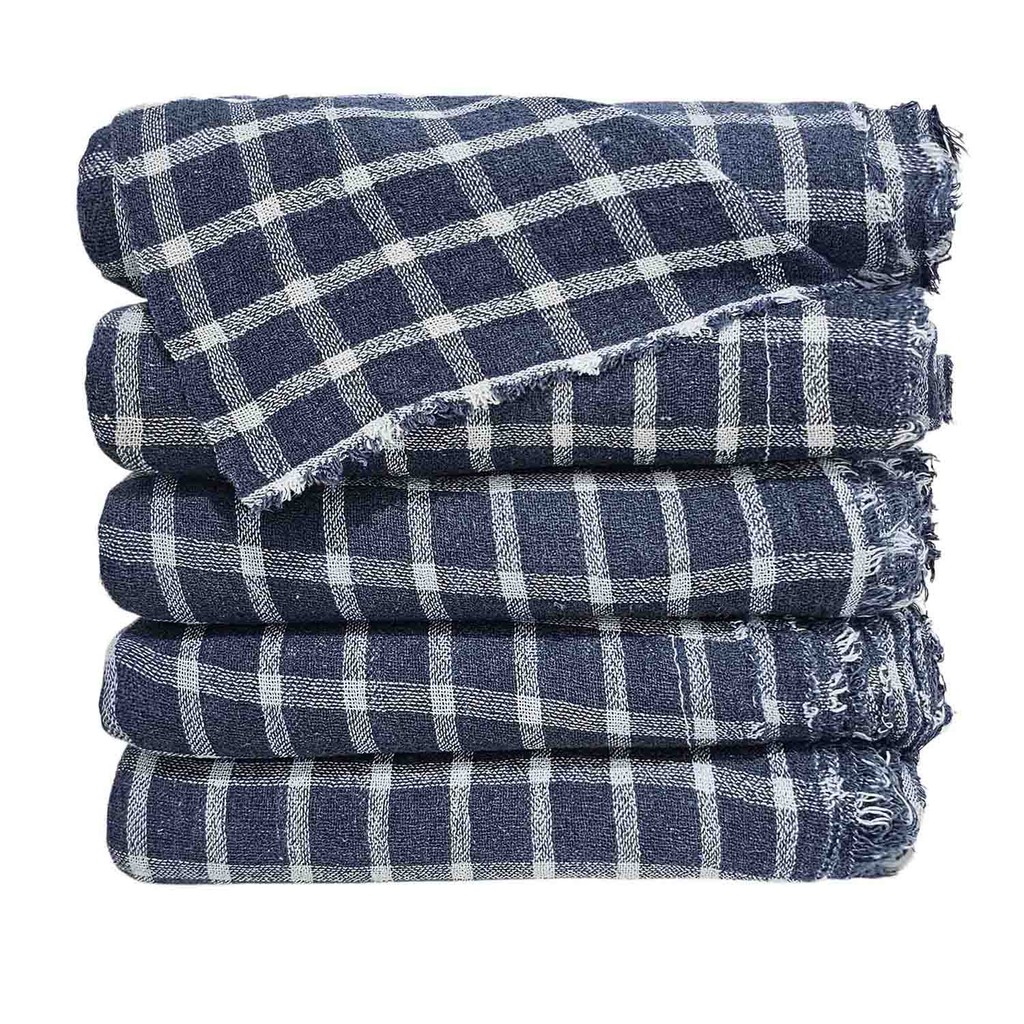 Kit 10 Panos Xadrez Limpeza Chão Azul 40x60cm Sacaria Dupla 100% Algodão Alta Absorção e Resistência