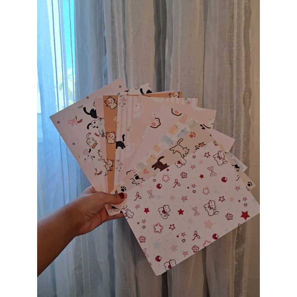 Kit 10 Papéis Decorados Gatinho 180g – Estampas A5 para Scrapbook, Journal