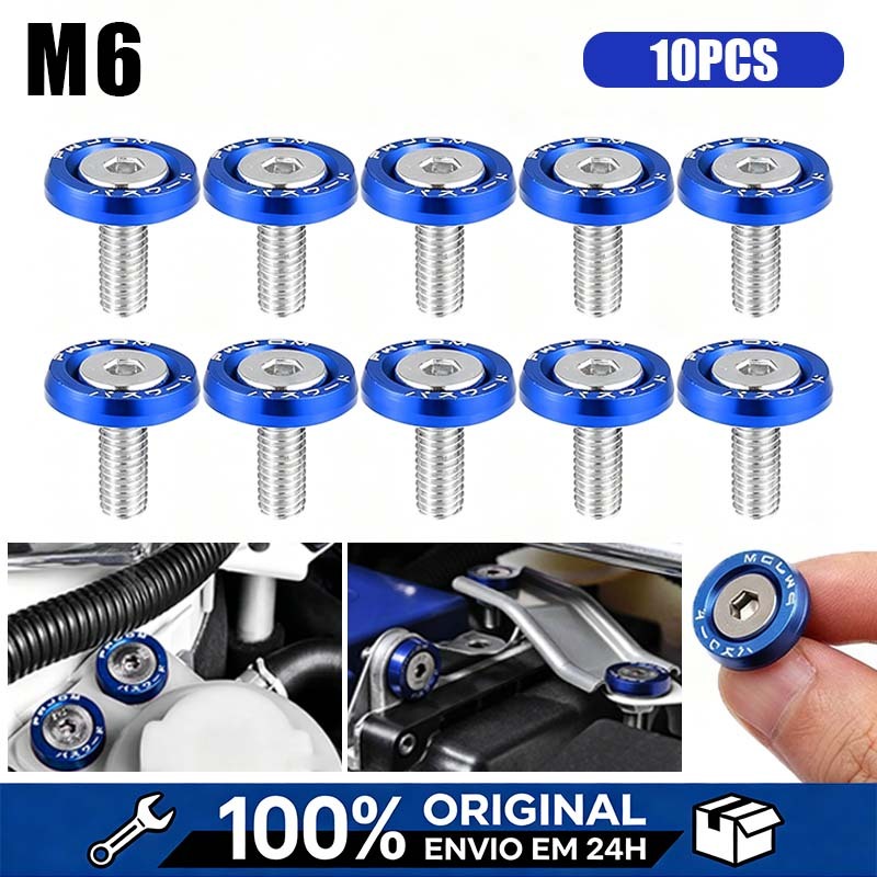 KIT 10 Parafusos E Arruelas Anodizadas JDM Modificados Fender Washers Motor M6X20MM P/Carro e Moto