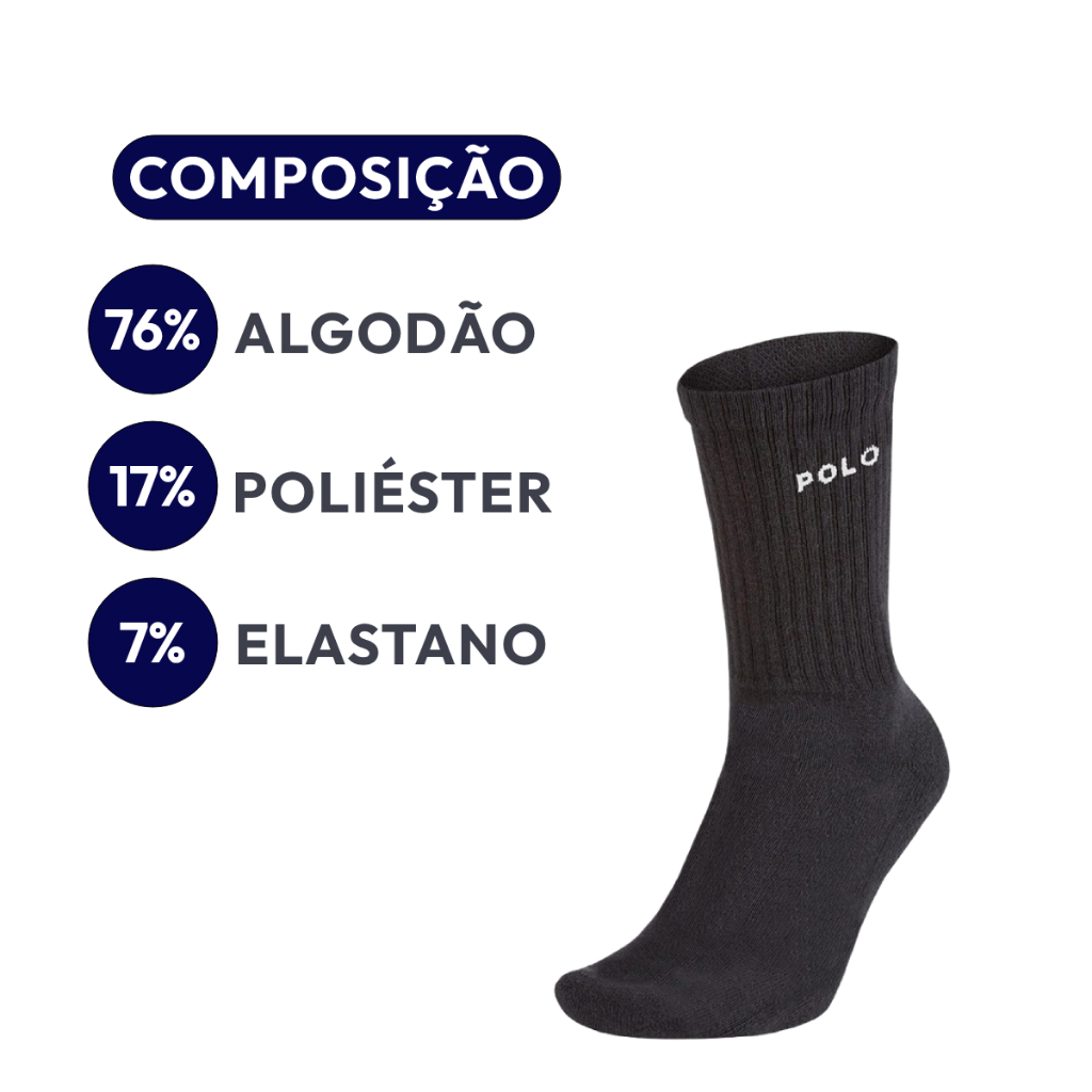 Meias Polo Star Cano Médio As meias perfeitas para o seu dia a dia, meias extremamente confortáveis, a escolha ideal para o seu guarda-roupa. Pode ser utilizado com qualquer tipo de calçado. Modelo com o cano canelado, dando um ajuste perfeito na hora de usar. Produto a pronta entrega! Enviamos em até 48hs úteis Tamanho único: 39-44 (Serve do número 39 a 44) Composição: 76% Algodão 17% Poliéster 7% Elastano Kit contém: 10 Pares de Meias O Kit é enviado de forma aleatória, podendo haver repetição de cores. A Compramais tem como missão desde 2013 proporcionar satisfação e qualidade para clientes em todo o Brasil. Trabalhamos com agilidade para garantir que seu pacote chegue com rapidez em suas mãos, no conforto do seu lar e sem precisar sair de casa! Temos um catálogo extenso de moda íntima que conta com itens femininos, masculinos e infantis. Ainda tem alguma dúvida? Nos faça uma pergunta! Compramais, paixão em moda íntima.