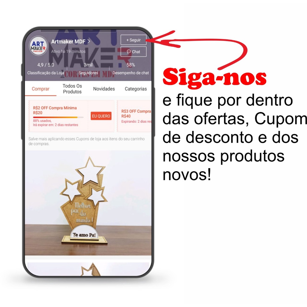 Suporte para azulejos e placas decorativas. Espessura: 6mm MDF cru acabamento em corte à laser. Valor referente ao par. Devem ser somados os dias úteis de cada processo: + Prazo da Confirmação do Pagamento escolhido Cartão ou Boleto + Prazo de Fabricação - Caso seu artigo seja personalizado. + Prazo dos Correios conforme sua escolha (PAC ou SEDEX) Obrigado pela visita e Boas compras ! Visite nossos produtos ! Fique a vontade para tirar duvidas ! Volte sempre!!!