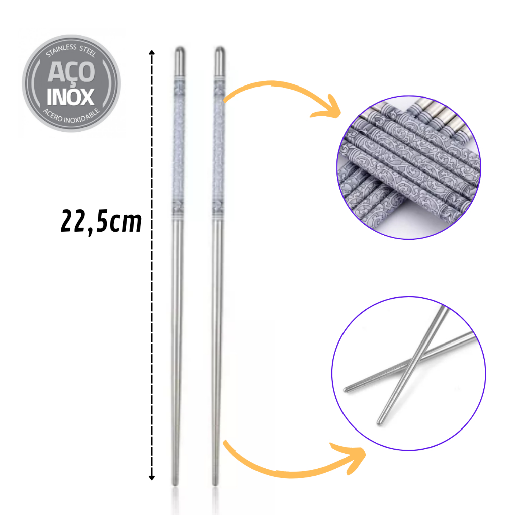 Kit 10 Pares Hashi (20 Palitos) Palitinho Japones Aço Inox Resistente Higiênic para Comida Japonesa Oriental