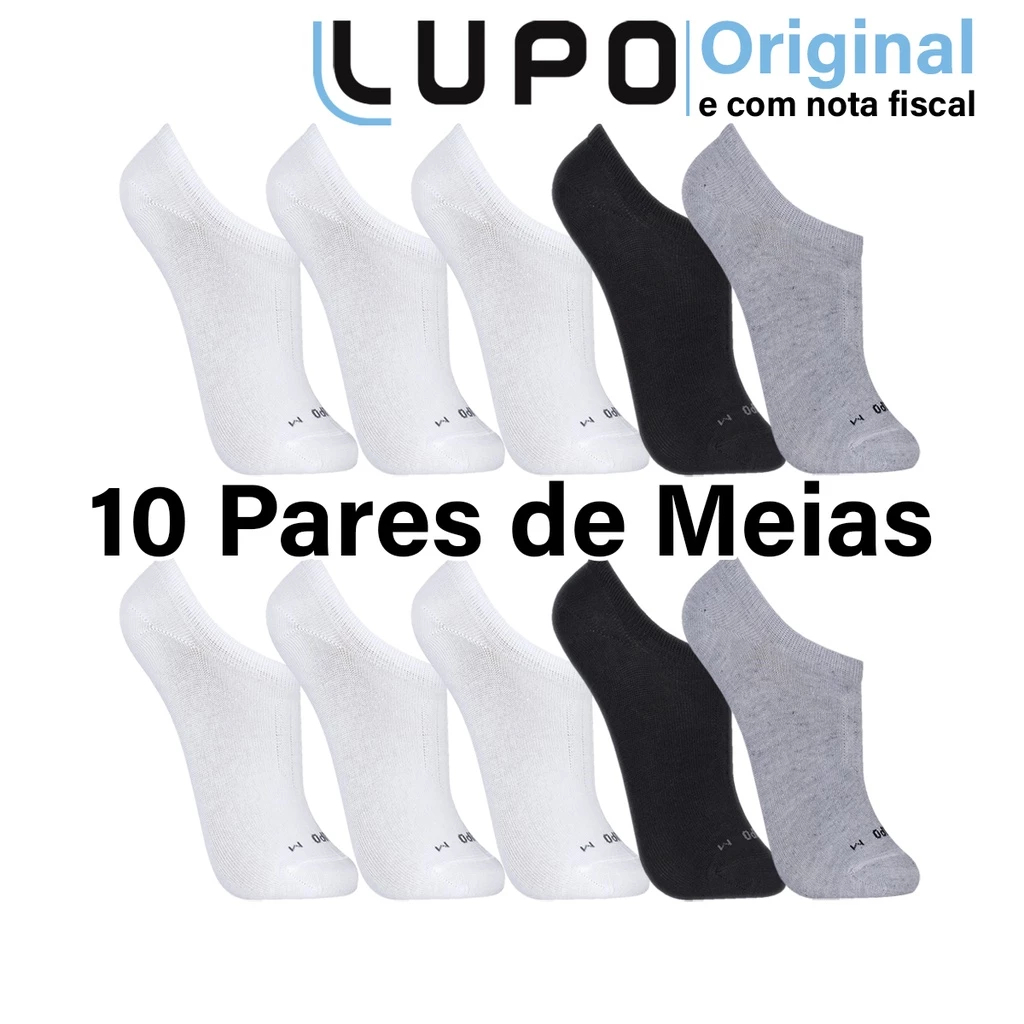 Kit 10 Pares Meias Soquete Lupo Sapatilha Original Algodão Masculina Feminina Cano Curto Baixo