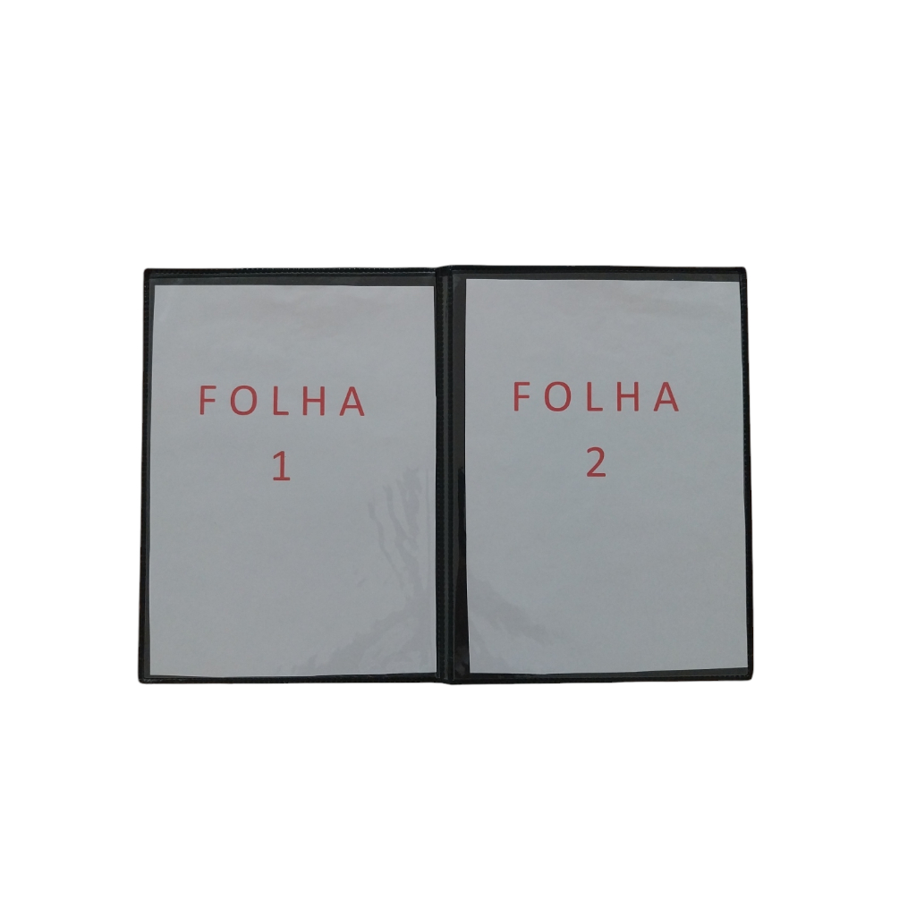 Pasta cardápio em PVC com 2 bolsas fixas, kit com 10 unidades