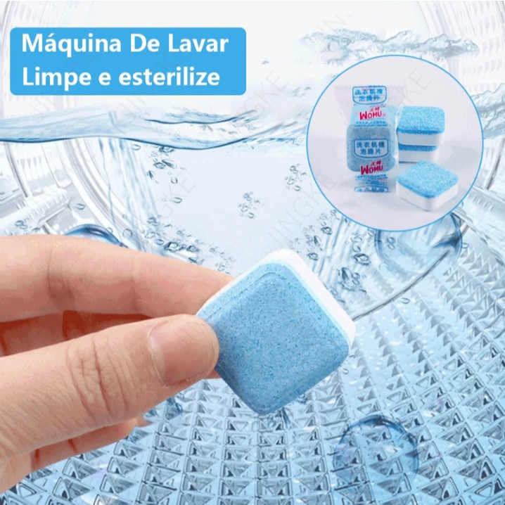 Kit 10 Pastilhas para Limpeza de Máquinas de Lavar Roupas Efervescentes Multifuncional
