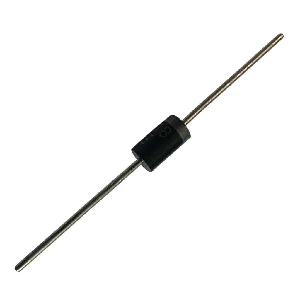 KIT CONTENDO 10 PEÇAS. O diodo 1N5408 é um diodo retificador de uso geral, capaz de conduzir até 3 amperes e suportar uma tensão reversa de pico de até 1000 volts. É frequentemente utilizado em fontes de alimentação, inversores, conversores e circuitos que necessitam de retificação de corrente. - Características principais: Tipo: Diodo retificador. Corrente máxima: 3A. Tensão reversa de pico: 1000V. Aplicações: Fontes de alimentação, inversores, conversores, supressão de picos de corrente reversa em cargas indutivas (relés, motores, etc.). - Mais detalhes: O 1N5408 é um diodo da série 1N54XX, e dentro dessa série, é o que suporta a maior tensão reversa, podendo substituir outros diodos da série. É um componente eletrônico fundamental em diversas aplicações onde é necessário converter corrente alternada (AC) em corrente contínua (DC). PRODUTO NOVO. GARANTIA: 90 DIAS,