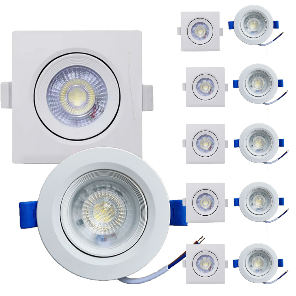 Kit 10 pcs Luminária Led Spot 7w 10w Redondo Quadrado Embutido Branco Frio Quente 3000k 6500k Bivolt