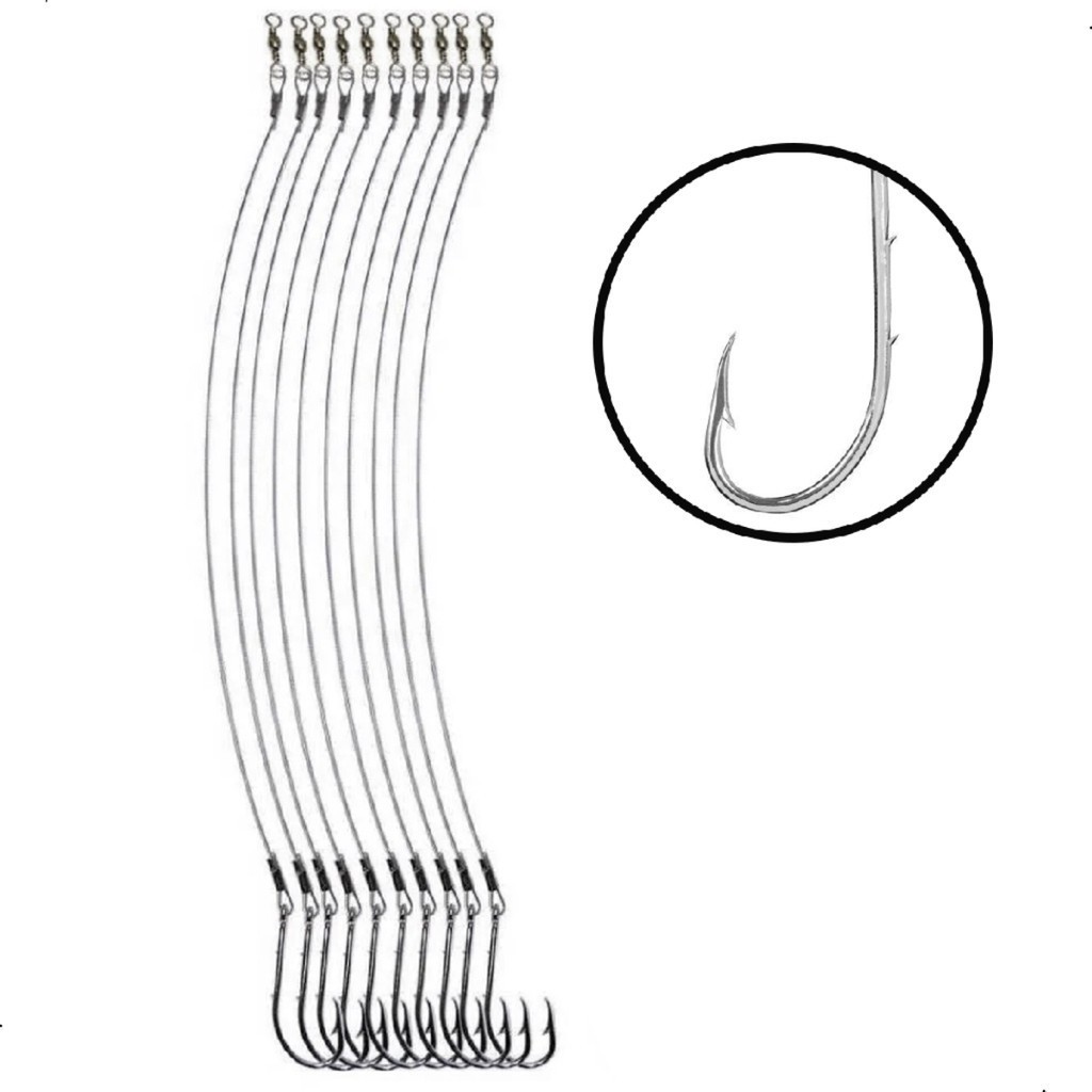 Kit 10 Peças Anzol Encastoado 4330 Cabo Flexível Com Girador
