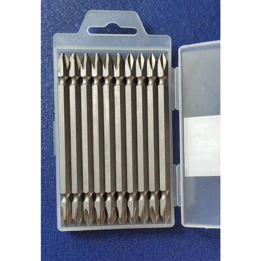 Kit 10 Peças Bits Ponteira Dupla Philips 100mm Aço Vanádio Imantado Ph2 Para Parafusadeira Profissional