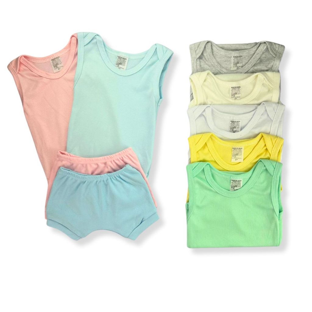 Kit 10 Peças Body Regata + Shorts Tapa Fralda Liso Infantil Bebê Menino e Menina