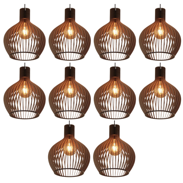 kit 10 Pendentes Luminarias Grande Com Fiação Completa Cor Marrom 28 x 34 cm - 10GMM