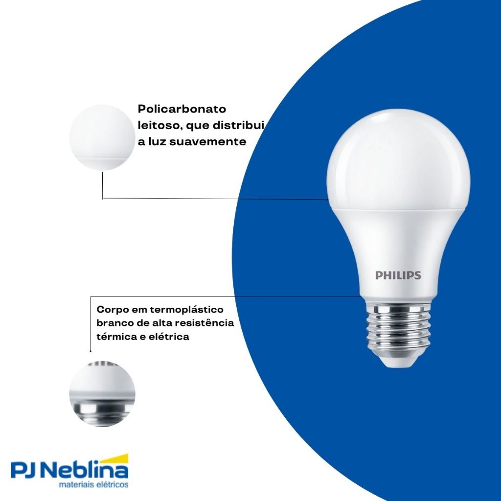 **TODOS OS PRODUTOS SÃO ORIGINAIS, NOVOS E ACOMPANHAM NOTA FISCAL. Código Interno: K04134 Código Fabricante: 929002037912 Código Referencia: 34859200196x10 Kit 10 Lâmpadas Led Bulbo A55 9W Bivolt E27 4000K Luz Neutra Branca 806 Lúmens Casa/Lojas Philips CARACTERÍSTICAS: • Luz Neutra (4000K): Proporciona iluminação clara e equilibrada, ideal para ambientes que exigem foco e conforto visual. • Alta Eficiência Energética: Consome apenas 9W e substitui lâmpadas incandescentes de até 60W, com economia de energia de até 85%. • Tecnologia Philips LED: Qualidade, durabilidade e desempenho confiáveis de uma marca líder em iluminação. • Bivolt Automático (110V~220V): Compatível com qualquer rede elétrica padrão. • Soquete E27 (rosca comum): Fácil instalação em qualquer luminária compatível. APLICAÇÃO: • Iluminação geral em residências, lojas, escritórios e ambientes comerciais • Ideal para luminárias de teto, pendentes, plafons, spots e abajures • Uso em áreas internas onde se busca uma luz clara, sem ser fria ESPECIFICAÇÕES TÉCNICAS: Marca: Philips Modelo: Bulbo A55 Código do Fabricante: 929002037912 Potência: 9W Soquete: E27 Tensão: Bivolt (110–220V) Temperatura de Cor: 4000K – Luz Neutra Fluxo Luminoso: 806 lúmens Formato: A55 Ângulo de Abertura: ~200° Vida Útil Estimada: 15.000 horas Índice de Reprodução de Cor (IRC): ≥80 Frequência: 50/60Hz Não Dimerizável Material: Termoplástico com difusor leitoso Após o período de garantia de 30 dias da loja, a tratativa será diretamente com o fabricante.