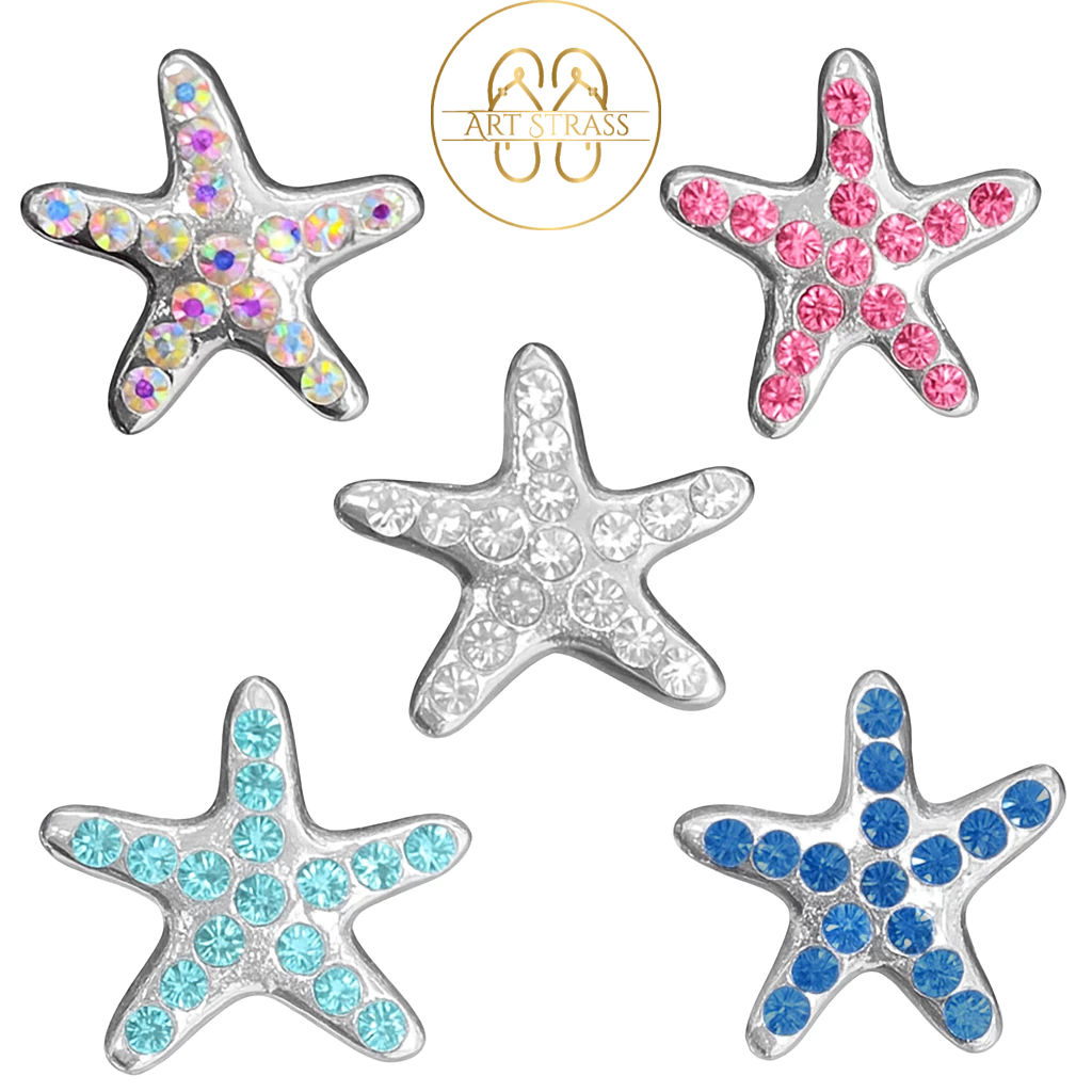 Kit 10 Pingentes Estrela do Mar de Metal em Banho Prata com Strass