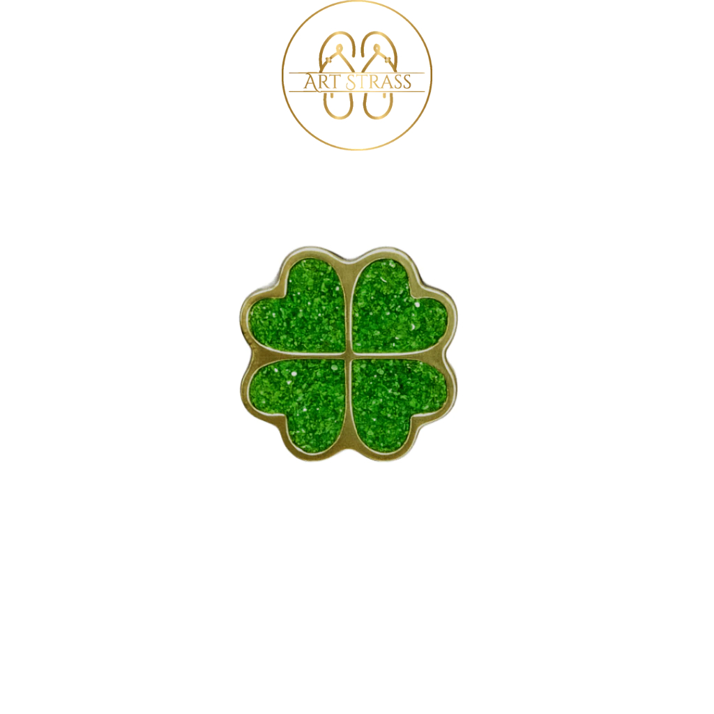 Kit 10 Pingentes Trevo com Glitter Para Chinelos Em Banho Dourado
