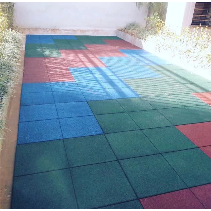 KIT 10 Piso Colorido de Borracha Placa 11mm Verde Azul Cinza ou Terracota Academia Playground