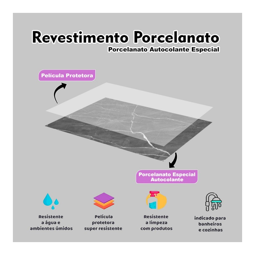 Adesivo De Parede E Piso Chão Impermeável. Revestida com película de lixamento. Anti derrapante, à prova d'água e resistente ao desgaste. AUTO COLANTE, NÃO PRECISA DE COLA!!! FÁCIL DE APLICAR. ANTIRRISCO Tamanho: 50cm x 25cm cada unidade. Rendimento: 0,125 Metros Quadrados. ATENÇÃO : * A cor pode ter variação de lote para lote, não nos responsabilizamos por mais de uma compra, recomendamos comprar uma única vez para toda a área que necessita. * Devido ao diferente monitor e efeito de luz da ambiente, a cor das fotos dos anúncios podem ter uma variação de até 10% na cor real do material. * O preço é referente 10 unidades na medida de 50x25cm, totalizando 1,25m². VANTAGENS *Fácil aplicação; *Autocolante; *Película Protetora resistente à água; *Limpeza com produtos de limpeza; ONDE PODE SER APLICADO? * Em qualquer superfície liso, limpa e seca totalmente.(Piso, Escada, Madeira, Vidro , Imóveis, Azulejo, Metal, Cozinha, Banheiro, Box, Paredes revisadas com tinta plástica ou massa corrida concreto e outros) * Não serve parede rebocada, Piso áspero, texturizado. * Não pode ser aplicado em lugares com: Tinta magnética, superfícies texturizadas, superfícies com infiltrações, tinta fresca (12 dias após pintura). *Para Cozinha, banheiro, lavatório, tem que passar cola impermeável nos rejuntes após a aplicação, para não entrar água. INSTALAÇÃO Pode ser aplicado por qualquer pessoa, não requer experiência e não necessita de cola. ***O tamanho da placa do vídeo é maior, utilizamos apenas para ilustrar e mostrar o material, e como funciona a aplicação do mesmo*** *CASO TENHA DÚVIDAS SOBRE O PRODUTO OU SOBRE QUAL QUANTIDADE COMPRAR, ESTAREMOS A DISPOSIÇÃO PARA LHE ATENDER E AUXILIAR VIA CHAT.