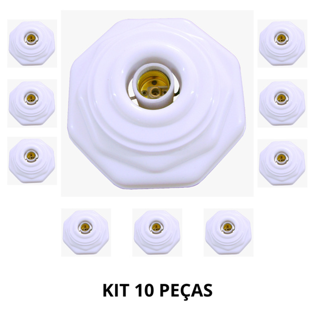 | Kit 10 Plafon Octagonal Soquete E27 Branco COM FIO P/ Lampada de at... este produto | R$ 99,86 | — | 4.9/5 | 5 |