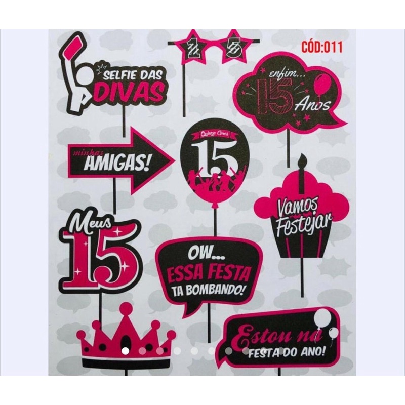 KIT 10 PLAQUINHAS DIVERTIDAS SELFIE ANIVERSÁRIO 15 ANOS DEBUTANTE (COD 11)