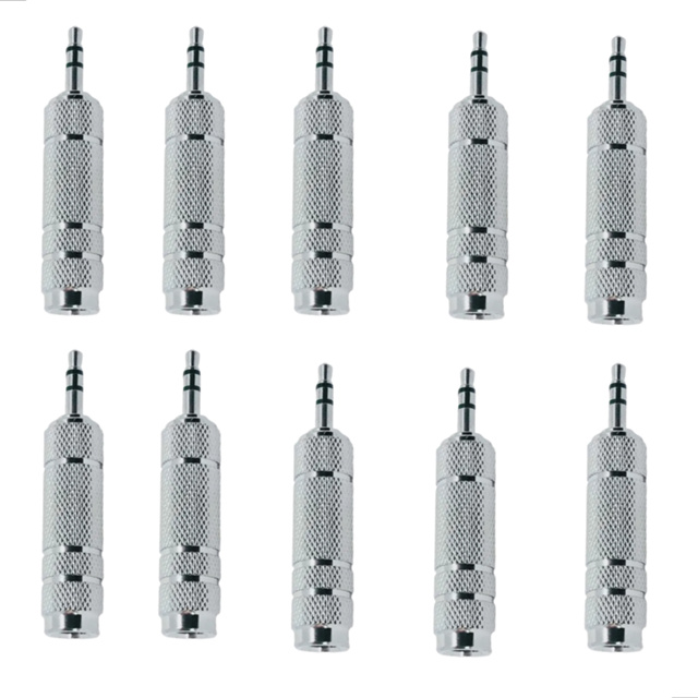Kit 10 Plug Adaptador P10 Femea X P2 Macho Stereo Metal Blindado Prata