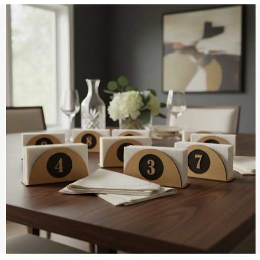 Porta Guardanapo Numerado em MDF – Kit 1 ao 10 Deixe a organização e a decoração da sua mesa muito mais elegantes com este kit de porta guardanapos numerados, ideal para festas, eventos, casamentos, aniversários e confraternizações. Produzido em MDF cru de 3 mm, é perfeito para quem deseja usar no estilo rústico ou personalizar com pintura, verniz ou outros acabamentos. - Conteúdo do kit: 10 unidades numeradas de 1 a 10 Medidas aproximadas de cada peça: Comprimento: 13 cm Altura: 6 cm Material: MDF cru de alta qualidade Espessura da chapa: 3 mm - Características: Produto enviado sem pintura Numeração fixa (1 ao 10) Base firme para apoio do guardanapo Design simples, elegante e funcional - Indicações de uso: Porta guardanapo para mesas de festa Identificação e numeração de mesas Decoração de eventos Personalização artesanal - Observações: Guardanapos não inclusos Por ser MDF cru, pode apresentar pequenas variações naturais do material - Envio rápido e bem embalado.