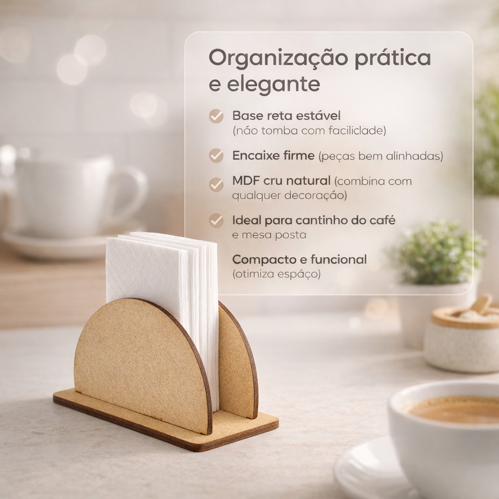 A SOLUÇÃO PRÁTICA E ELEGANTE PARA A SUA MESA! Seja para equipar as mesas do seu restaurante, lanchonete, ou para criar centros de mesa personalizados para casamentos e festas, o nosso Porta Guardanapo Meia Lua em MDF é a escolha perfeita. Com um design clássico e minimalista, ele mantém os guardanapos de papel organizados e de fácil acesso, sem ocupar muito espaço na mesa. Por ser fabricado em MDF Cru de alta qualidade, ele funciona como uma "tela em branco", pronto para receber a identidade visual do seu evento ou negócio! POR QUE ESCOLHER NOSSO PORTA GUARDANAPO? Melhor Custo-Benefício: Ideal para quem precisa comprar em quantidade para comércios ou eventos. Frete Super Econômico: Enviamos o produto DESMONTADO. Além de baratear o frete para você, garante que as peças cheguem intactas, sem risco de quebra no transporte. 100% Personalizável: O MDF cru aceita perfeitamente pintura (tinta PVA, acrílica, spray), verniz, decoupage ou até mesmo adesivos com a logo da sua empresa. Tamanho Ideal: Projetado na medida exata para segurar os guardanapos de papel tradicionais (estilo lanchonete/bar) sem que eles tombem. FICHA TÉCNICA Material: MDF Cru de 3mm (Corte a laser sem farpas). Modelo: Meia Lua / Arco. Capacidade: Ideal para guardanapos de papel tamanho padrão. Condição de Envio: DESMONTADO (Base + 2 Laterais). DIMENSÕES APROXIMADAS (MONTADO): Comprimento: 13 cm Altura: 7 cm Largura (Profundidade): 4 cm INSTRUÇÕES DE MONTAGEM A montagem é super rápida e não exige ferramentas: Encaixe as duas laterais (meia lua) nas fendas da base retangular. Para que a peça fique firme e pronta para o uso diário, aplique uma gotinha de Cola Branca de Madeira (PVA) ou Cola Instantânea (Super Bonder) nos encaixes. Atenção: A cola NÃO acompanha o produto. DÚVIDAS FREQUENTES 1. Ele serve para guardanapos de tecido? R: Este modelo de mesa é projetado especificamente para acondicionar guardanapos de papel dobrados. 2. As peças vêm lixadas? R: Sim! Nossos cortes são feitos a laser de alta precisão, o que garante bordas lisinhas e sem farpas, além de um acabamento levemente escurecido nas laterais que dá um charme rústico à peça. 3. Vocês vendem em maior quantidade para restaurantes? R: Sim! Entre em contato conosco! O QUE VEM NA EMBALAGEM: Kit de peças em MDF para montar o Porta Guardanapos Meia Lua. GARANTIA E ENVIO Produto de fabricação própria com Nota Fiscal. Envio imediato para todo o Brasil. Porta guardanapo mdf, suporte guardanapo papel, porta guardanapo mesa, centro de mesa restaurante, porta guardanapo lanchonete, mdf cru atacado, artesanato mdf, porta guardanapo meia lua, enfeite de mesa festa, lembrancinha mdf.