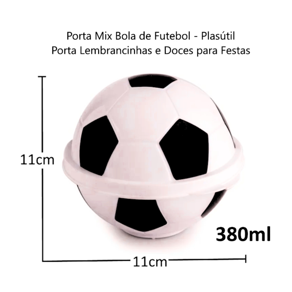 Kit com 10 Porta Mix Bola - 380ml Marca Plasútil *Neste anuncio contem imagens ilustrativas para inspirar sua criatividade!* ⚽ Porta Mix Bola Plasútil: O Golaço de Funcionalidade para sua Festa! Comemore o seu campeão e marque um golaço na decoração e nas lembrancinhas do seu evento! Nosso Porta Mix Bola não é apenas um item de festa, é uma Lembrança 2 em 1 super funcional que vai muito além do zero a zero. 🎉 Na Festa: A Estrela da Decoração e da Surpresa! Design Perfeito: Metade bola de futebol, ideal para ambientar festas com tema de futebol, Copa do Mundo ou do time do coração. A combinação do formato e da funcionalidade faz dele o centro de mesa ou a lembrancinha perfeita. O Novo "Sacolinha Surpresa": Use para caprichar no recheio! Coloque guloseimas, doces, brindes, mini-brinquedos ou até mesmo pequenos apitos e medalhas (tendência em lembrancinhas de futebol). Abertura e Fechamento Práticos: Facilidade para montar a lembrança e para a criança acessar o conteúdo. 🍎 No Dia a Dia: Funcionalidade Pós-Festa (Reutilizável!) Multiuso Inteligente: A festa acabou, mas o presente continua! A bola se transforma em um mini-pote organizador para lanches, frutas picadas, pequenos brinquedos ou guardar moedas. É um item de valor agregado que agrada pais e crianças. ✨ Diferenciais e Qualidade: Capacidade Ideal: Volume de 380 ml – Perfeito para uma porção generosa de mix. Segurança Garantida: Fabricado em plástico polipropileno (PP), é um produto atóxico e livre de Bisfenol-A (BPA Free). Segurança em primeiro lugar para o seu campeão! Dimensões (C x L x A): 12,6 x 11,8 x 11,2 cm.