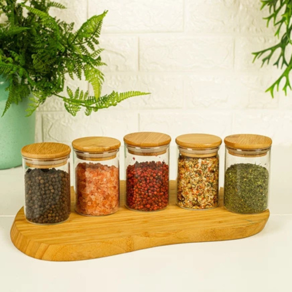 Kit 10 Potes De Vidro Condimentos 250ml Com Tampa De Bambu