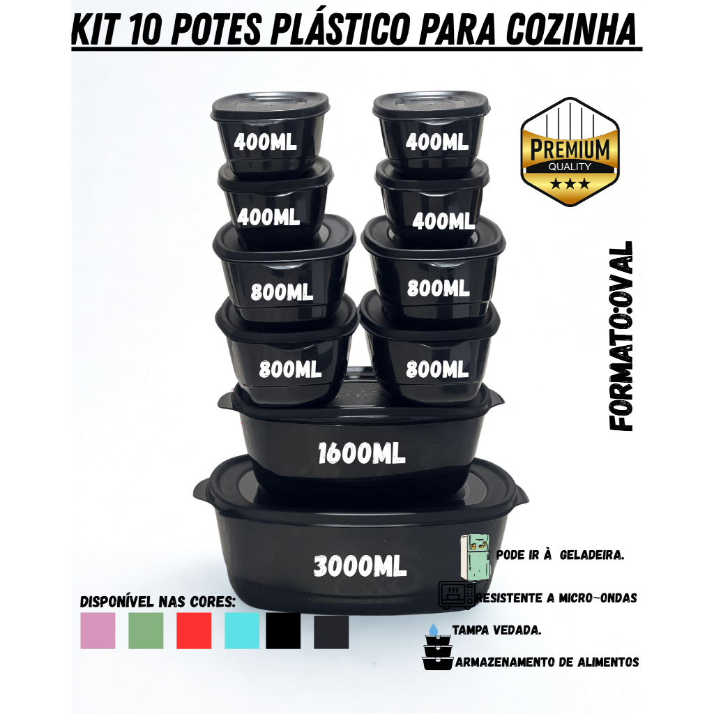 Kit 10 Potes Ovais Plásticos BPA Free – Organização de Alimentos – Cozinha Completa