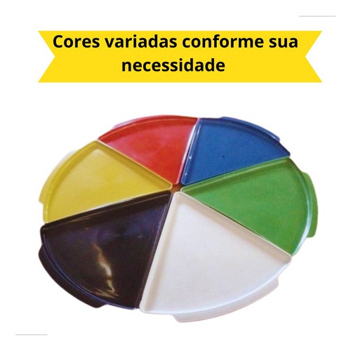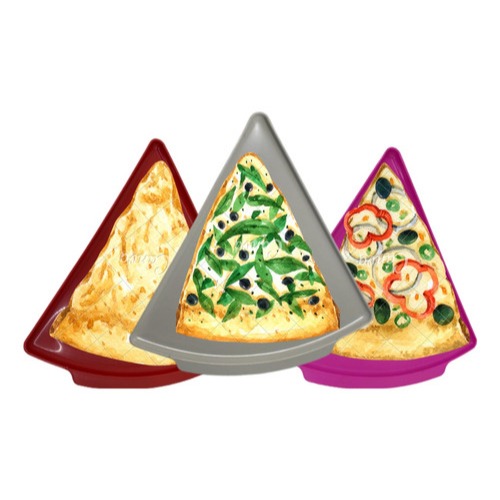 kit 10 unidades Prato em formato de Pizza – fabricado em polipropileno, não descartável, de excelente qualidade e alta durabilidade. Seguro e versátil: Ideal para servir Pizzas, Bolos e Tortas para adultos e crianças sem preocupação, seja em casa, pizzarias, doceiras, cafés ou padarias. Boa resistência a produtos abrasivos, e objetos cortantes. Pode ir à geladeira e micro-ondas. Contém 10 unidades- Escolha sua cor preferida. Características: Dimensões: 20,5x21,5 cm. Atóxico: Não transfere odor e gosto para os alimentos. Material: polipropileno Formato: Triangular/ pizza As cores poderão sofrer variações de acordo com o lote de matéria prima do fornecedor.