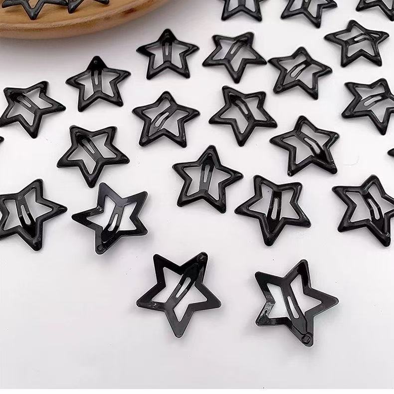 Kit 10 Presilhas Estrela Infantil, Grampos para Meninas Y2k Coloridas, Acessório de Cabelo Tic Tac preto