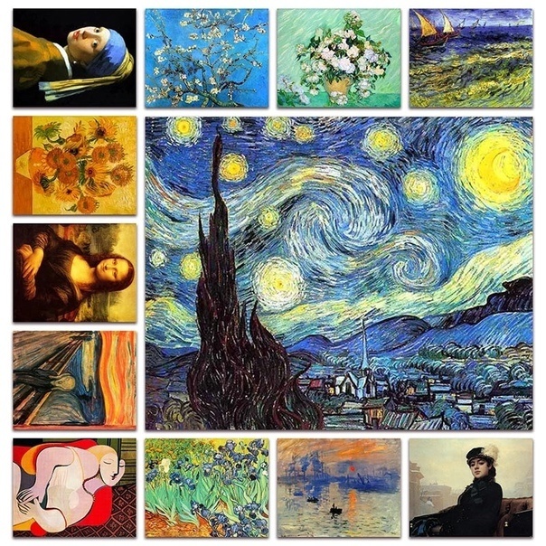Kit 10 Quadros Decorativos Arte Clássica Vincent van Gogh Leonardo da Vinci Pablo Picasso