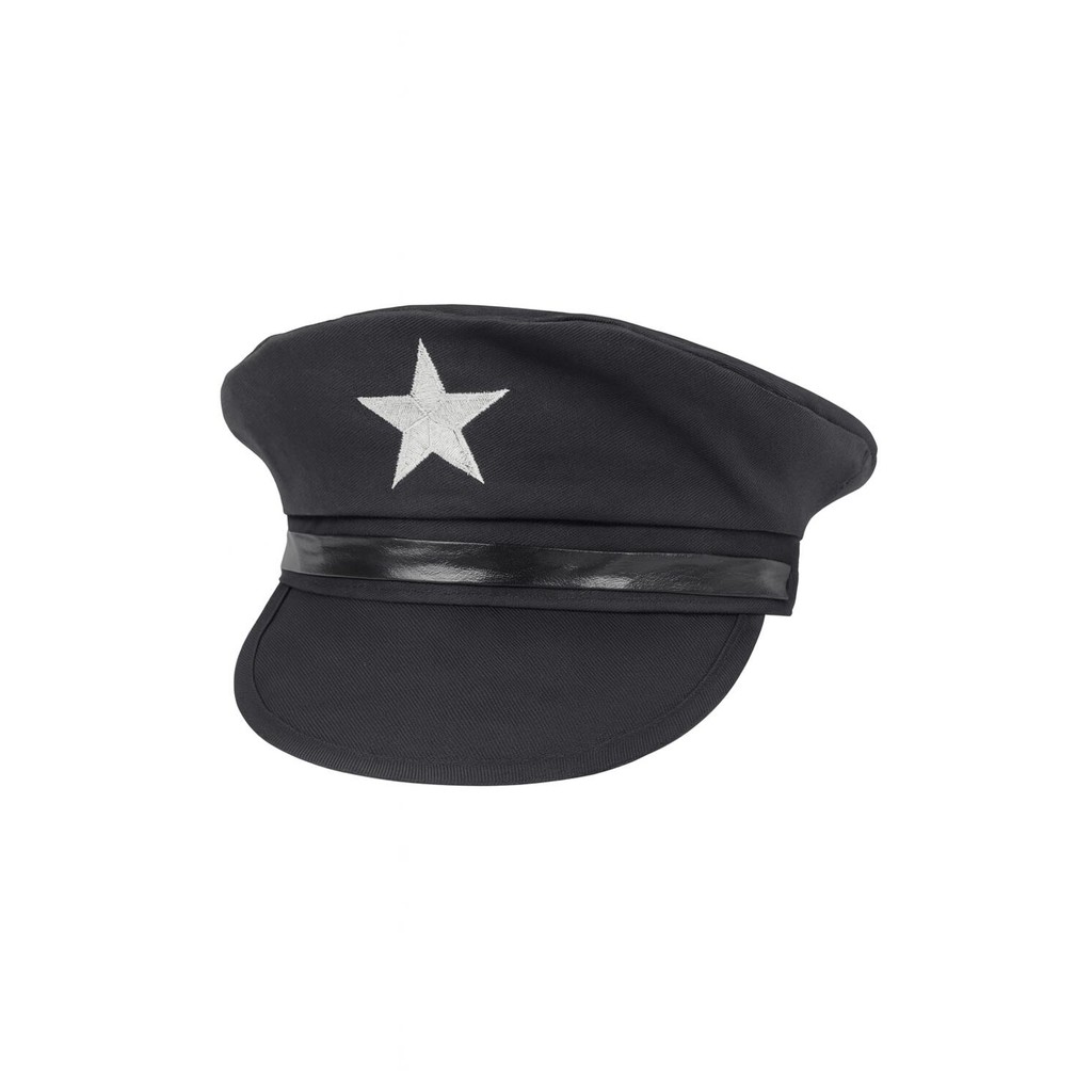 Com um visual marcante e versátil, o Quepe Preto com Estrela prateada é ideal para compor fantasias de autoridade, segurança, militares ou personagens fictícios. Fabricado em tecido leve e confortável, conta com aba estruturada, faixa preta brilhante e estrela bordada na parte frontal. É perfeito para eventos em grupo, fantasias escolares, teatro ou festas à fantasia. Diferenciais: - Kit com 10 unidades de quepes pretos com estrela prateada bordada - Faixa preta vinílica brilhante - Ideal para fantasias, eventos e produções teatrais. Genero: Unissex TIPO DE PRODUTO: Chapeu MODELO: Quepe Preto Descrição: Kit Quepe Preto com 10 Unidades Codigo do Produto: 710061 Itens Inclusos: 10 Quepes COM LUZES DE LED: Não