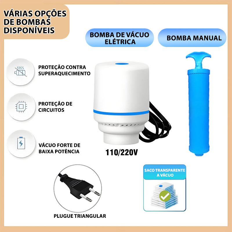 Envio de São Paulo, Brasil!!! Temos um armazém em São Paulo, Brasil, e todos os produtos são enviados de lá. Conjunto de Sacos para Selagem a Vácuo (5/10 sacos), ideal para edredons de plumas, toalhas e roupas. Atenção às diferenças de tamanho!!! Tamanho disponível: 80*100cm/100*120cm/100*130 cm Características principais: - Cor: Transparente - Reduz o volume, aumenta o espaço de armazenamento. - Reutilizável. - Seladora. - Impermeável. - Compressível. - Protetora. - Organiza de forma prática. - Muito prática, ideal para: roupas, toalhas, travesseiros, cobertores, etc. Inclui: Bomba elétrica: 110V/220V Bomba manual 5/10 sacos Instruções de uso: - Confirme o tamanho do saco a vácuo necessário. - Coloque itens grandes, como roupas e travesseiros, dentro do saco. - Feche o zíper para selar. Certifique-se de que a abertura da embalagem esteja completamente fechada para obter o melhor efeito. - Insira o bocal de um aspirador de pó ou bomba de vácuo na abertura da embalagem. - Ligue o aspirador de pó; ele removerá o ar da embalagem e comprimirá o conteúdo. - Retire o aspirador de pó ou a bomba de vácuo e feche a embalagem corretamente. - Minimiza o espaço ocupado no armário. Observação: - Os itens devem estar completamente limpos e secos. - Não guarde objetos pontiagudos, cortantes ou angulares. - Não guarde artigos de couro. Precauções: - Armazene em local fresco e seco, longe da umidade e da luz solar direta. - Mantenha longe de objetos pontiagudos, cortantes ou de alta temperatura. - Para evitar sufocamento, mantenha a embalagem plástica longe de crianças e bebês. Não use esta embalagem plástica em berços, camas infantis, carrinhos de bebê ou cercadinhos. - Guarde este manual de instruções para futuras consultas. - Mantenha este produto fora do alcance de crianças.