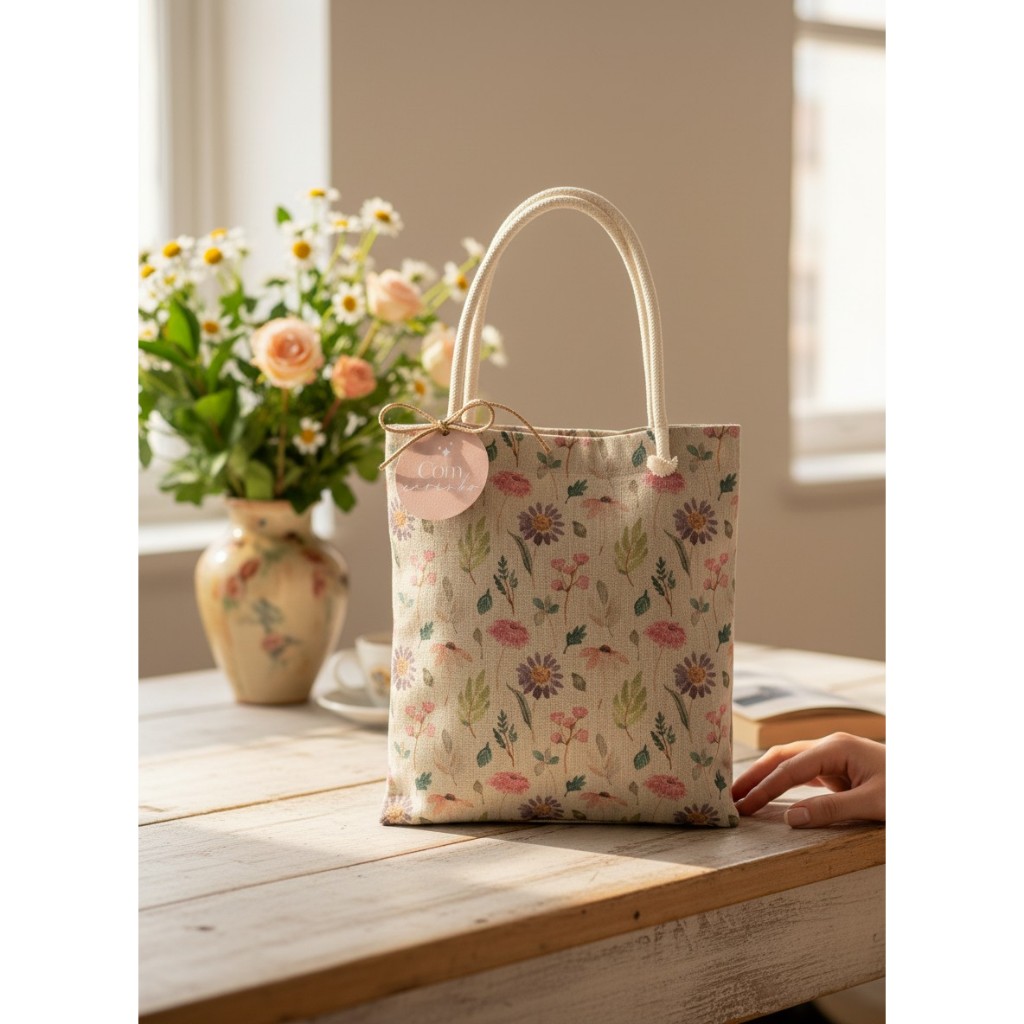 Kit 10 Sacolas Ecobag Tote Linho Estampado Alça em Cordão - Vanda - Festas Eventos Lembrancinhas