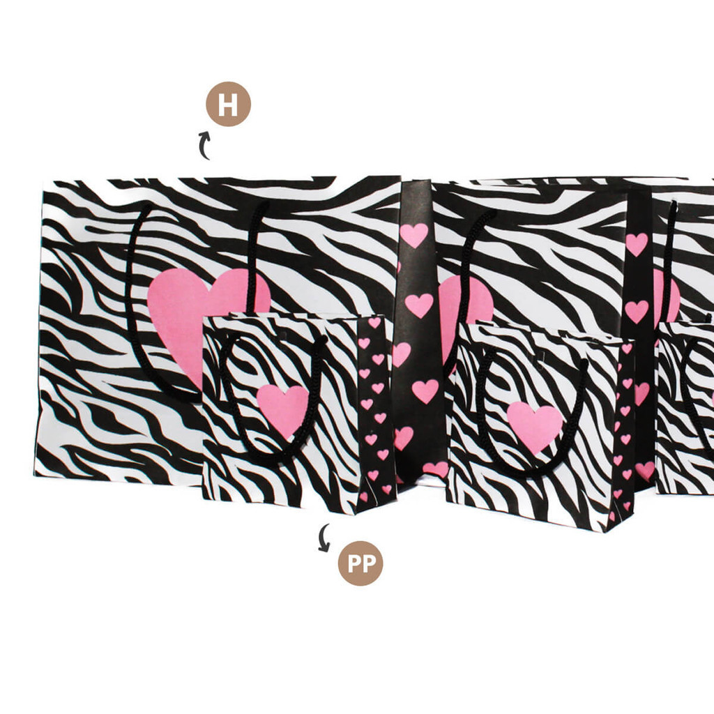 Kit 10 Sacolas Kraft C/ Alça Zebra Coração Rosa 18x25x8
