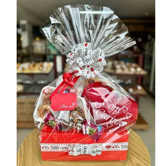 kit 10 Sacos Para Cesta De Presentes Café da manhã Natal Vários Tamanhos Tipo Celofane