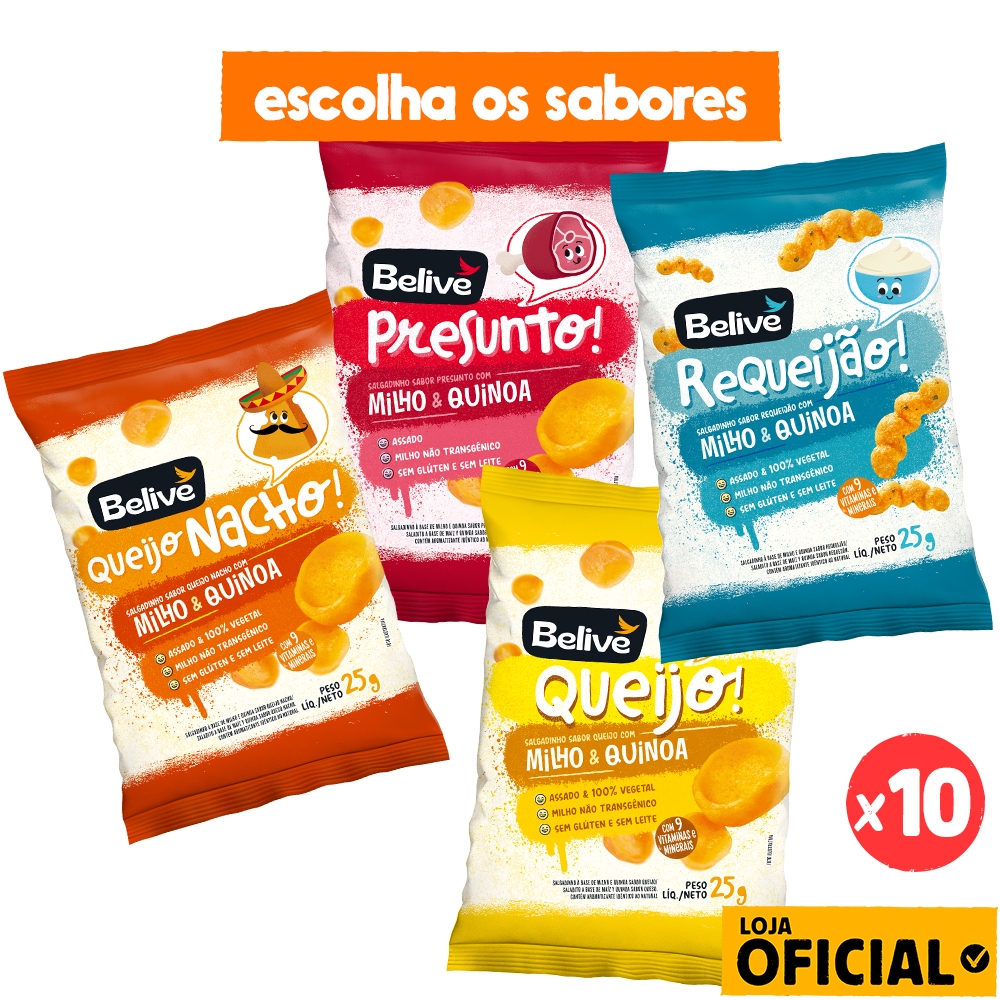 Kit 10 Salgadinhos de Milho Sem Glúten Sem Leite Belive - 25g