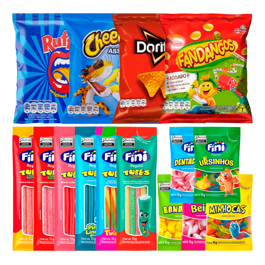 Kit 10 Salgadinhos Elma Chips + 10 Pacotes Bala Fini