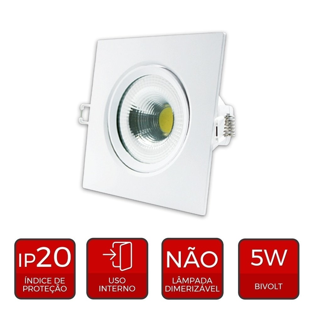 Kit 10 Spots - Spot Avant Led Quadrado Embutir 5W 6,5K 400 Lumens
